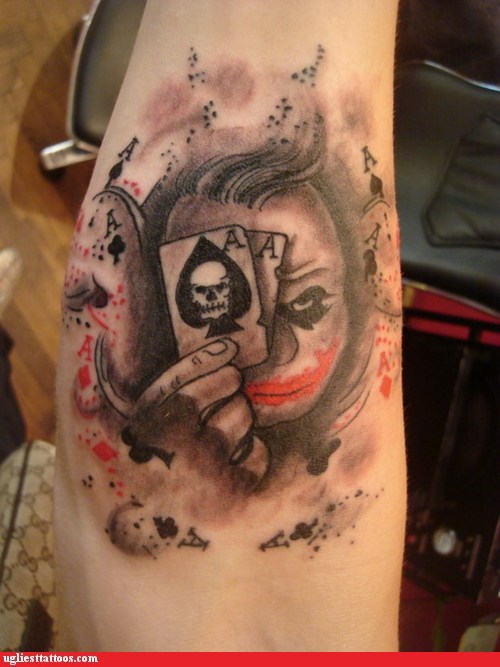 Shouldn T Those Cards Be Jokers Ugliest Tattoos Funny Tattoos Bad Tattoos Horrible Tattoos Tattoo Fail